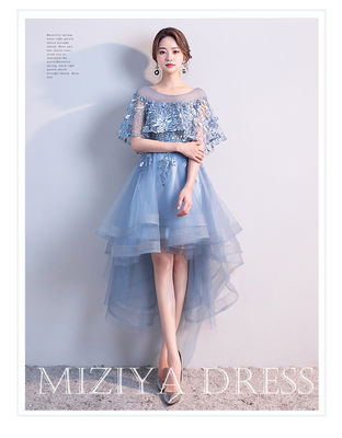 晚礼服2018春夏新款前短后长伴娘服聚会派对小礼服宴会蕾丝连衣裙
