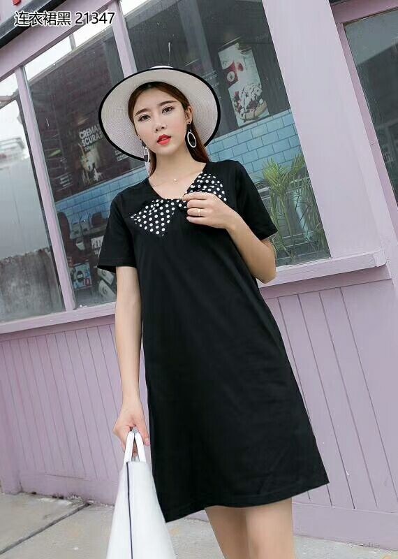 连衣裙;雪纺;短袖;均码;中长款;套头;圆领;高腰;甜美;A字裙;纯色;印花